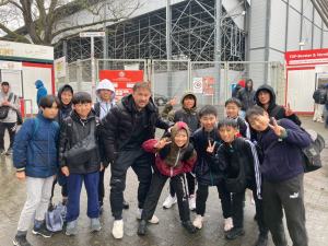試合会場に移動して、チケット待ってるときも岡崎選手に会えたりと、この子達は何か凄く幸運を持っている予感。