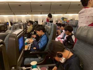到着して選手達に機内の過ごし方を聞くと、