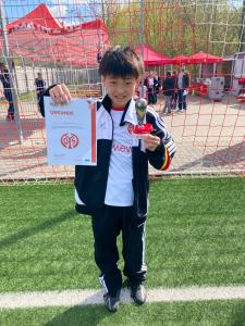 異国の地で4日間日本とは違うサッカーの環境に入り、沢山のことを学び、吸収出来たと思います!全セッションが終わった後に、今回のマインツキャンプの偉い人に日本人選手が呼ばれて、賞状とトロフィーをもらい、大勢の前で拍手ももらえました!